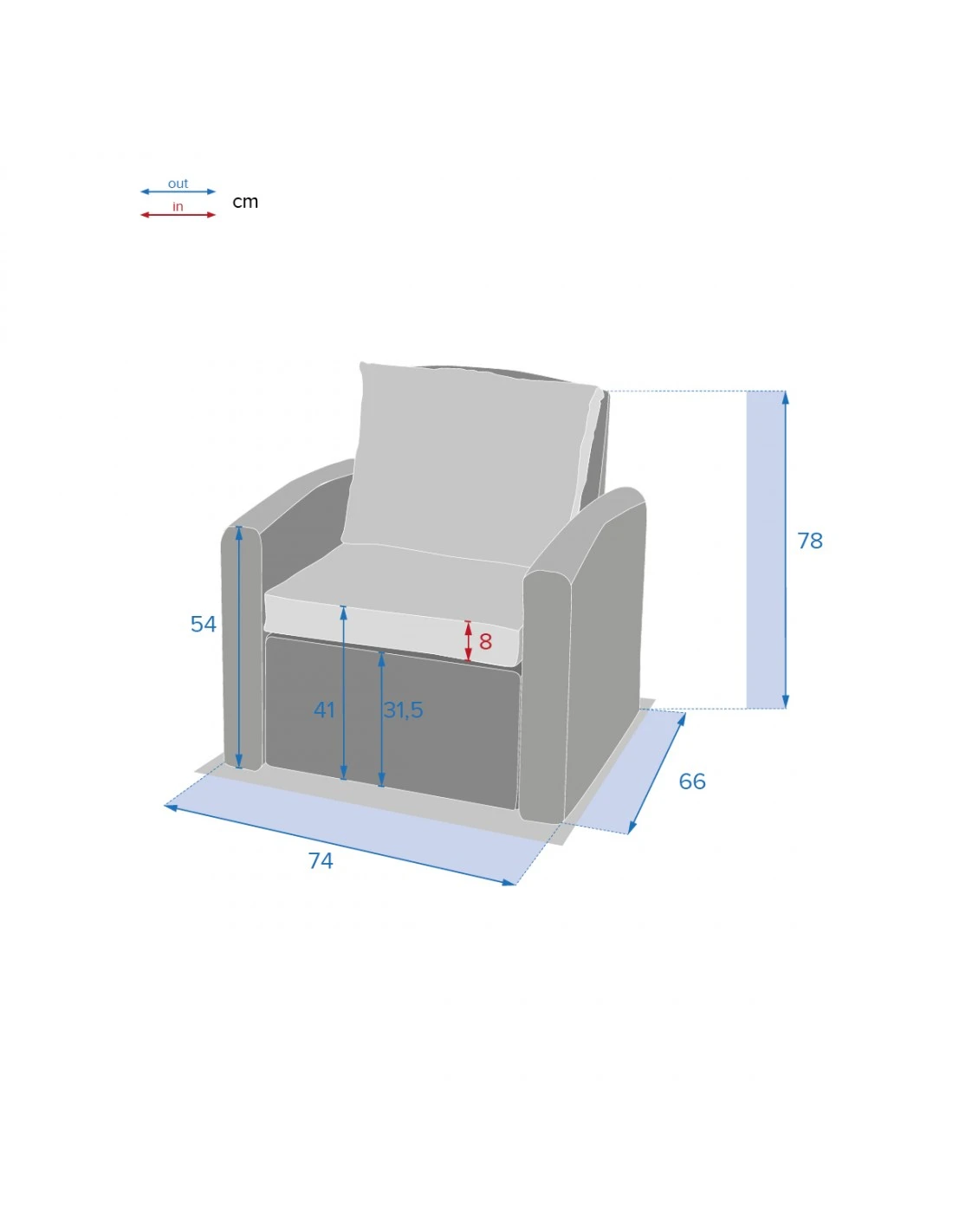 - Hauteur d’assise avec coussin : 41 cm Hauteur accoudoirs : 54 cm