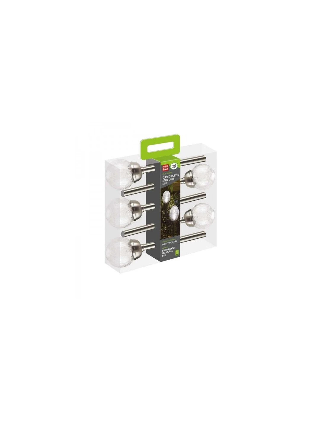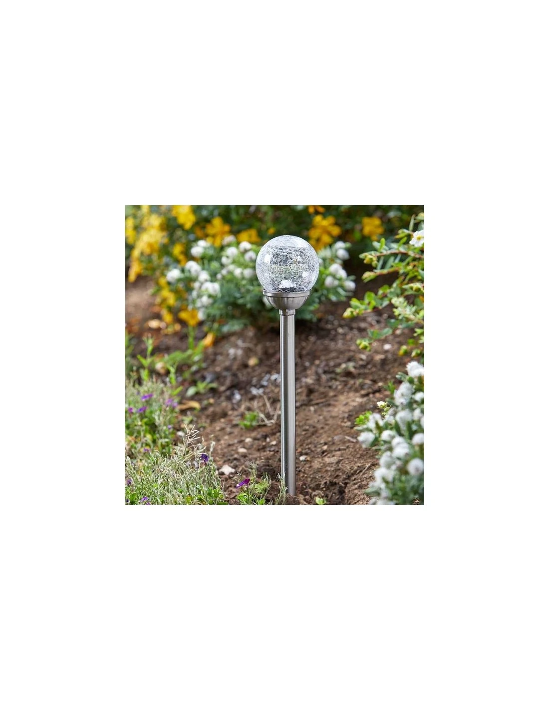 Illuminez votre jardin et vos allées avec ces 5 grandes balises Majestic de 52 cm à énergie solaire LED blanc en verre craquelé et inox.