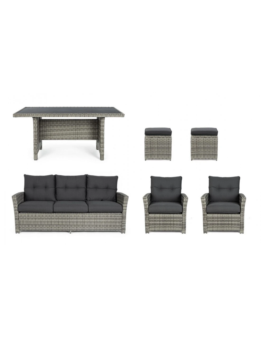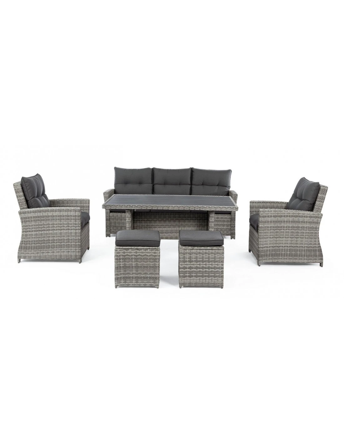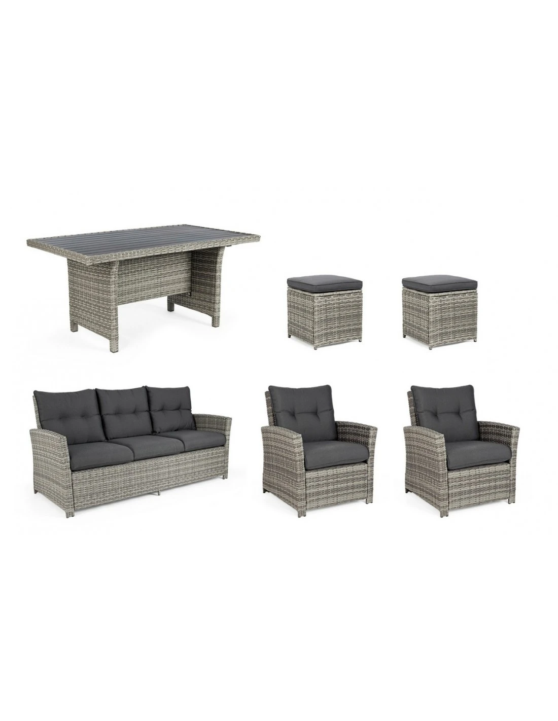 Succombez pour l’élégance du salon de jardin Ariel de la marque Andréa Bizzotto qui permet de se détendre mais aussi d’y manger grâce à sa table haute.
