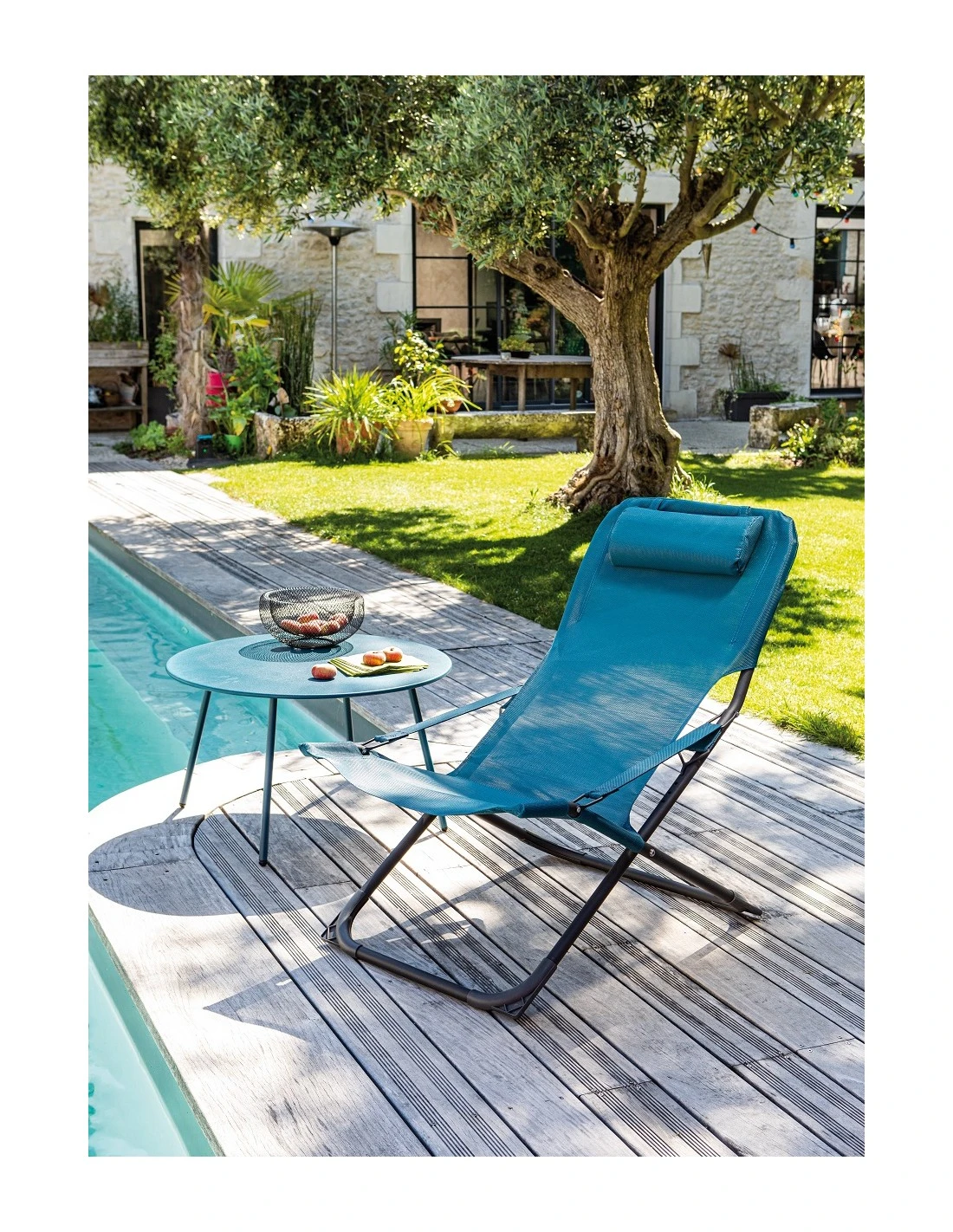 Table De Jardin Azua Pliante Carrée 2 Places – Aluminium – Gris Smoke Plateau Ect Effet Bois