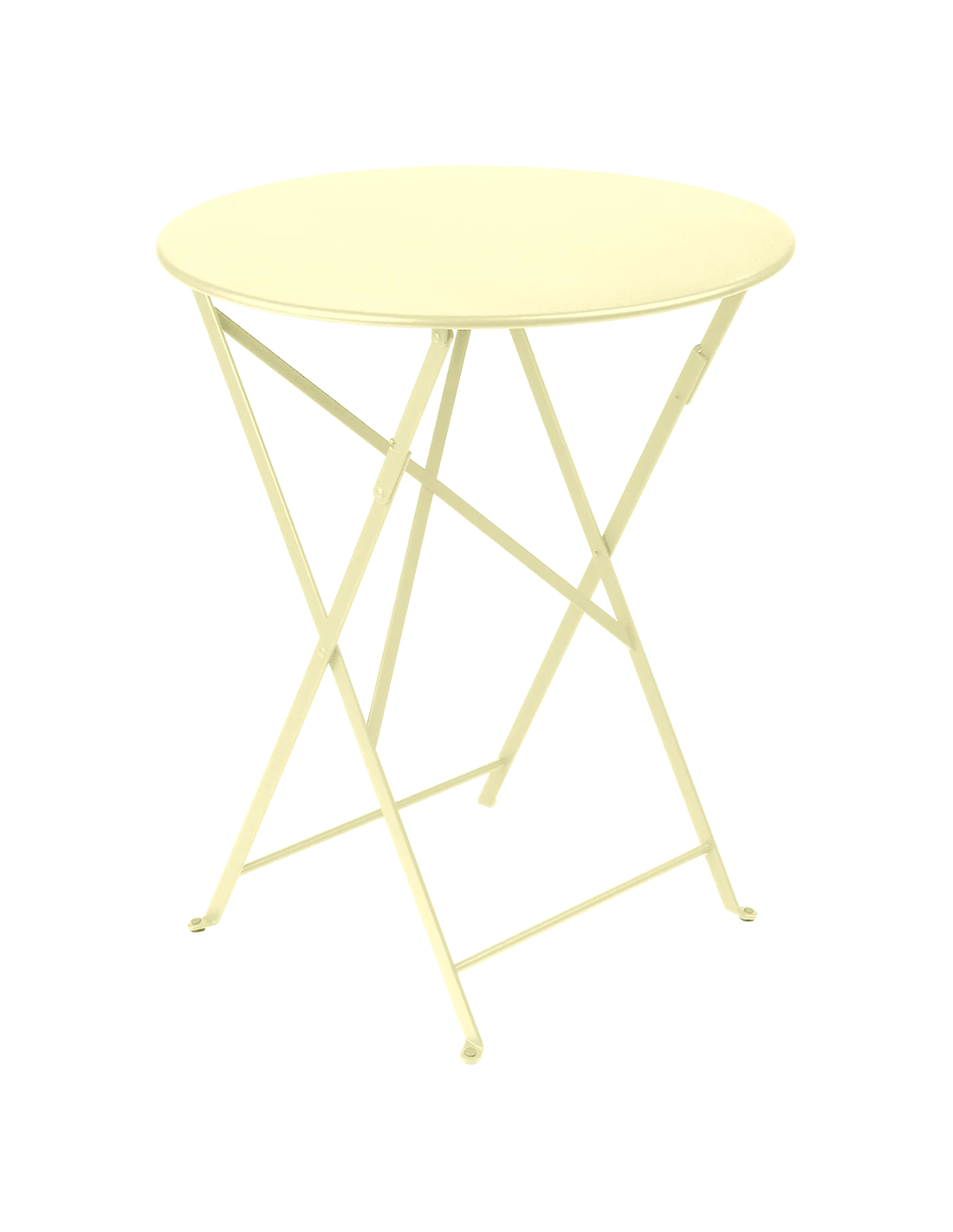 Une petite table de jardin 2 personnes de diamètre 60 cm, sobre et bien pratique qui se replie pour un rangement optimal.
